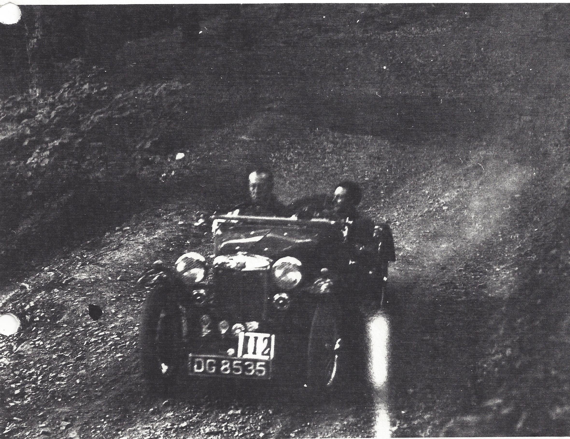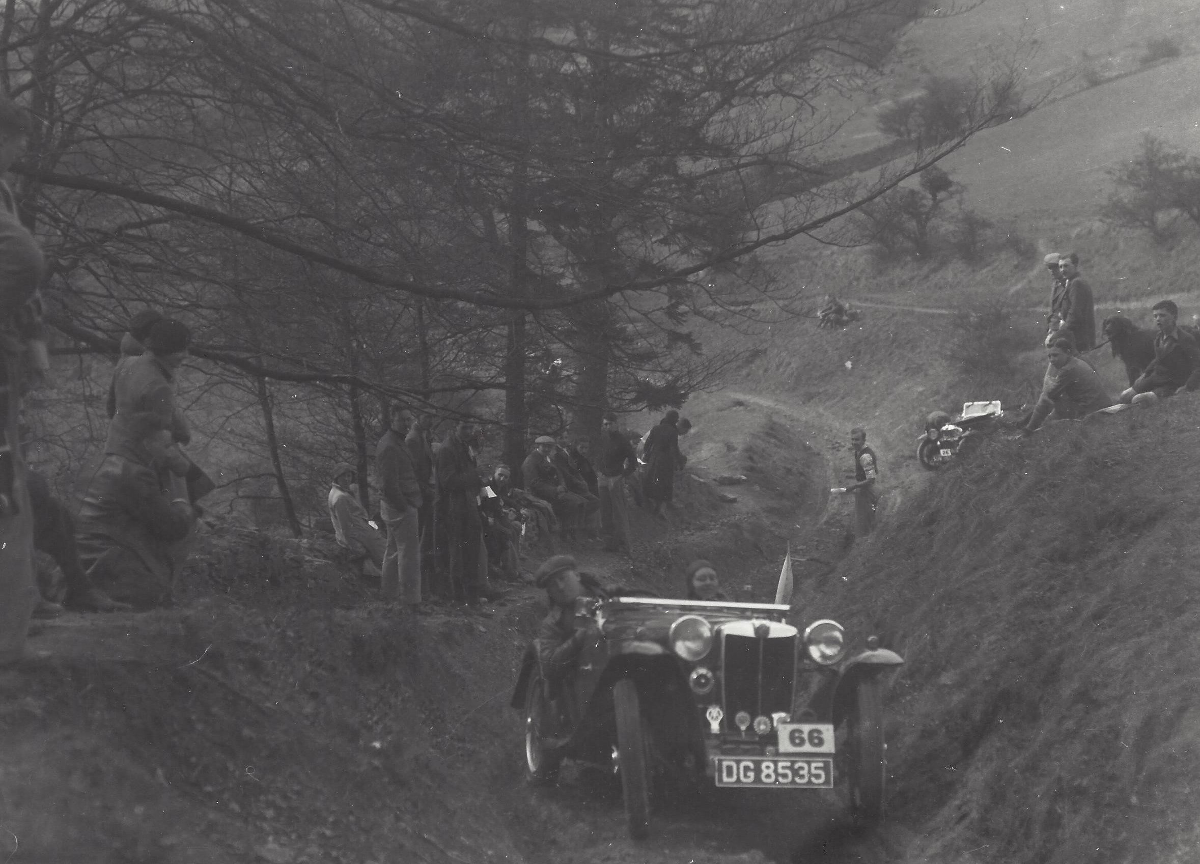 The following picture was taken during the 1934 Abingdon Trial when the car ws about 8 weeks old. It appears in very standard trim with no radiator guard, spot light or knobbly tires seen in later pictures.